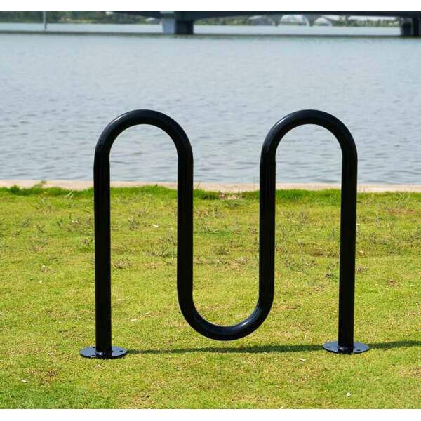 The Rolling Bike rack is where modern meets simplicity. Functional yet aesthetically pleasing these rack provides security, stability and two-way parking access for multiple bikes. The wave pattern is adequately spaced to allow easy pull-in parking, supporting just about every type of bicycle and popular bike locks.