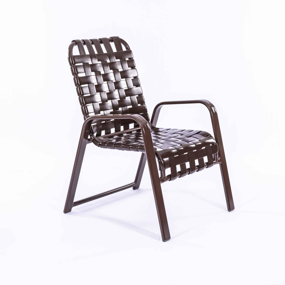 From pool to patio, you will find this very popular and iconic designed strap chair. Strap vinyl is a very economical solution and our cross weave design is an extremely durable solution for commercial pool furniture. With the users in mind, these chairs are built with an extra underside bracing for support and durability. In addition, the double-wrapped vinyl straps are made with UV and mildew resistance that will extend the life of your equipment. The chair body is constructed of a high quality aluminum body that will not rust and powder-coated in any of our frame finishes. In addition, our chairs are easily stacked for storage and transportation.
