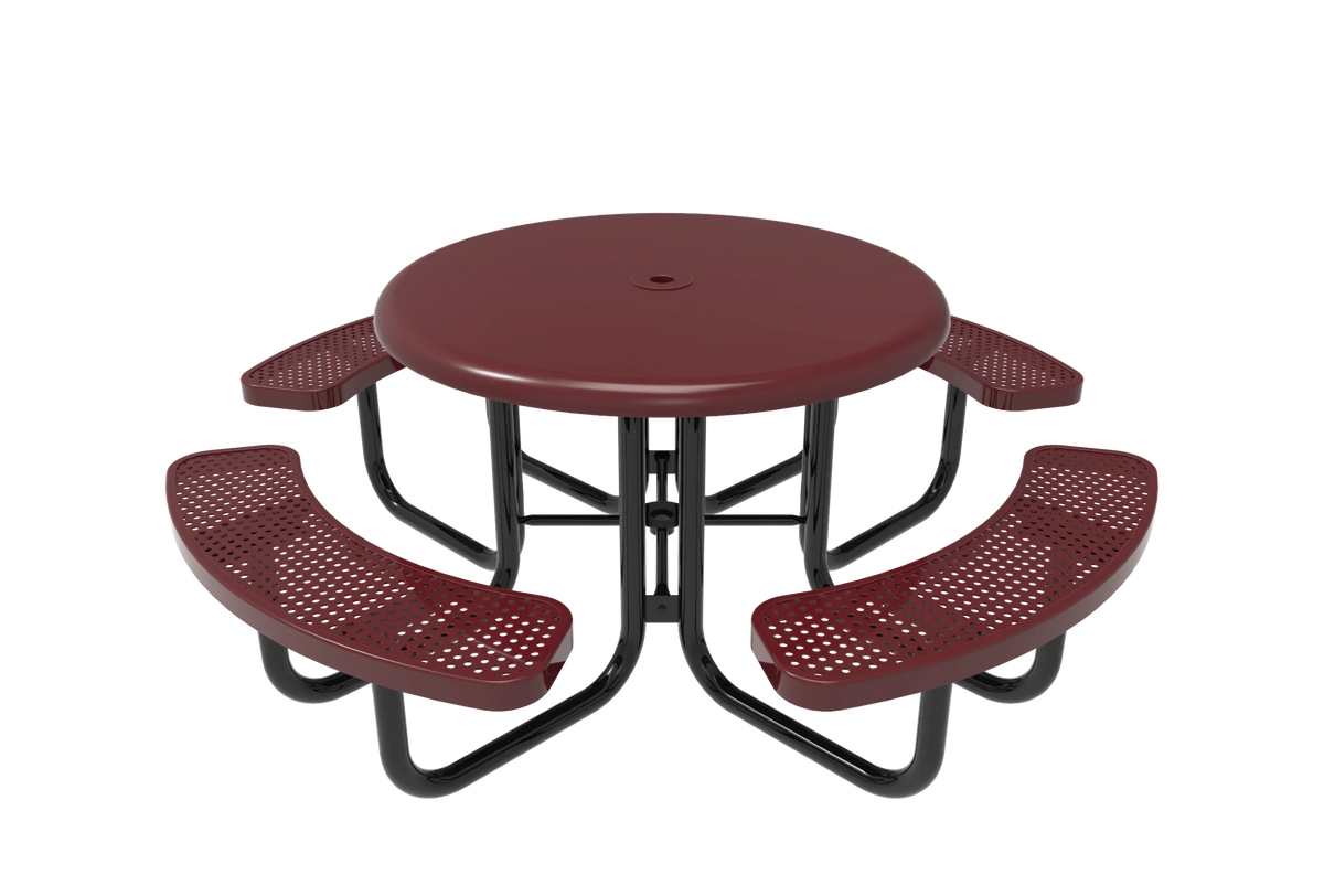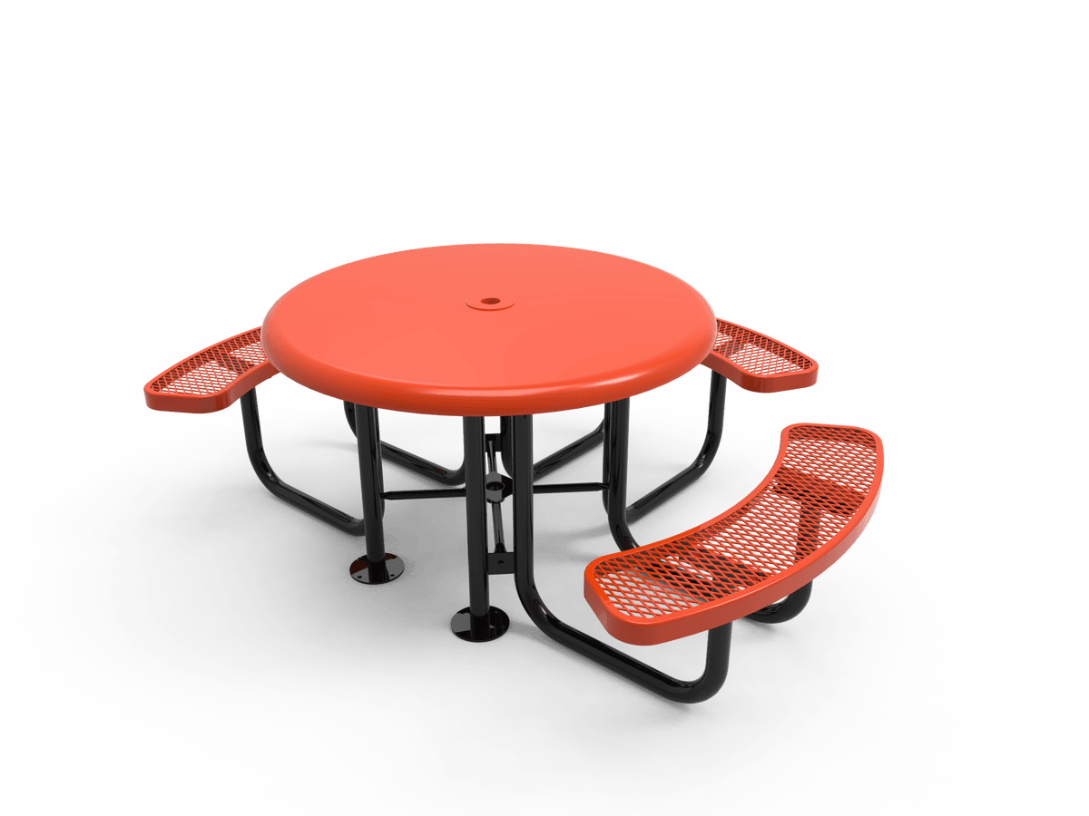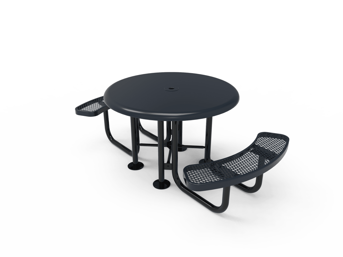 The Portable Round Solid Top picnic table will complement any area. With a design that will last, the solid top is complemented with sturdy expanded metal seats. Both are covered in a thermoplastic coating that comes in either the Industry Standard or Advantage formulas. This coating seals the surface making it resistant to corrosion, nicks and scratches. The framepedestal is coated in a powder coat finish to help withstand the elements. Designed to seat eight adults comfortably at a time your guests will love the versatility, style and comfort of this picnic table.