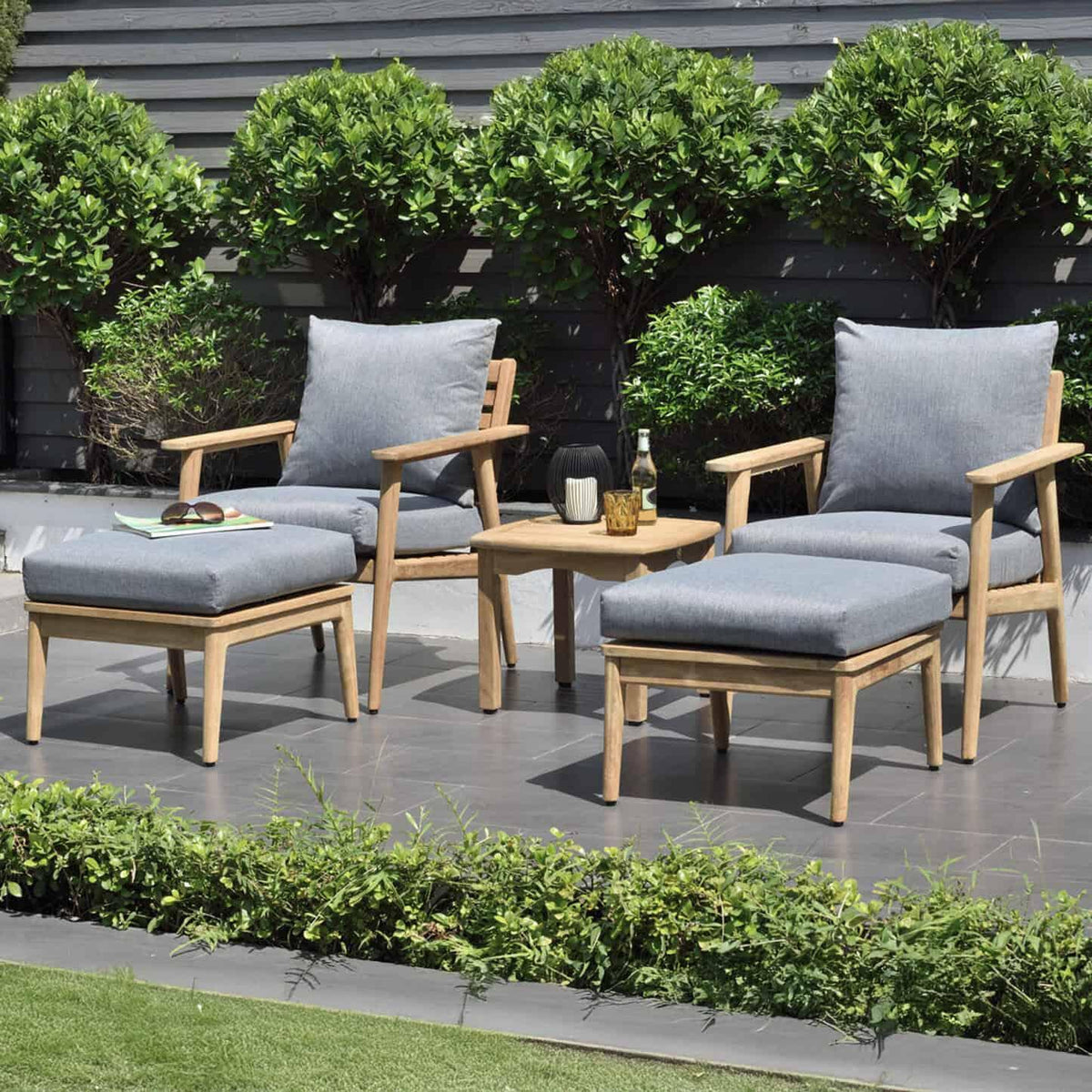 Flores 5 Piece Deep Seating Cushioned Seating Set - Teak Patio Sofa Set