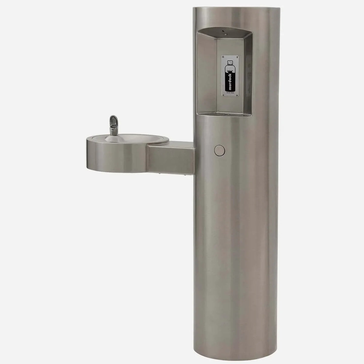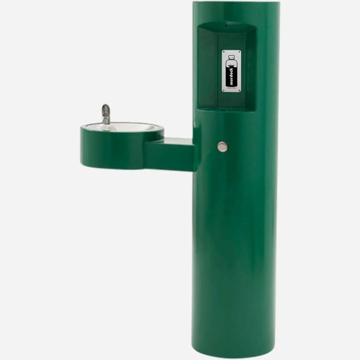 Our drinking fountain with bottle filler is the perfect complement to your park, city streets or campground. Water fountains are a certain necessity to keep visitors at east and allow for re-hydration on a long day. Catering to guest who need a quick sip or those looking to fill up! Water bottle fillers give back not only to the environment, but keep trash off city streets. This fountain features stainless steel construction made to last with a vandal resistant access panel. Each hydrant comes standard with bottle filler activated by a 9 volt sensor or a push-button as standard. Available in stainless, green, red or blue.