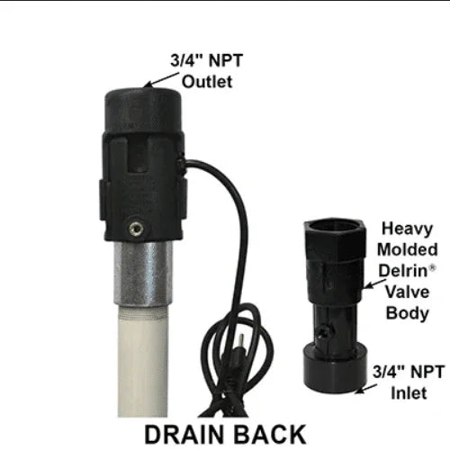 - Water flow thru plunger and 1/2 in galvanized pipe or 3/4 in rigid copper, provides high flow rate needed without increasing cost
