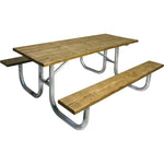 This heavy duty commercial picnic table frame kit is the perfect cost efficient option for your campground or RV park. This welded frame features an extra wide design that is tip resistant, welded frame for durability and features 2 3/8" OD tubing 11ga, diagonal braces of 1-5/16" OD and all 3/8" dia. galvanized carriage bolt fasteners. The galvanized tubing is further enhanced with a silver powder coating that keeps it corrosion protected for years to come. Please note, this is for the frame only. As one of our top sellers this offers one of the most cost effective options available on the market. Purchasing the wood locally will significantly save on costs in addition to a substantial freight savings.