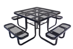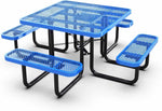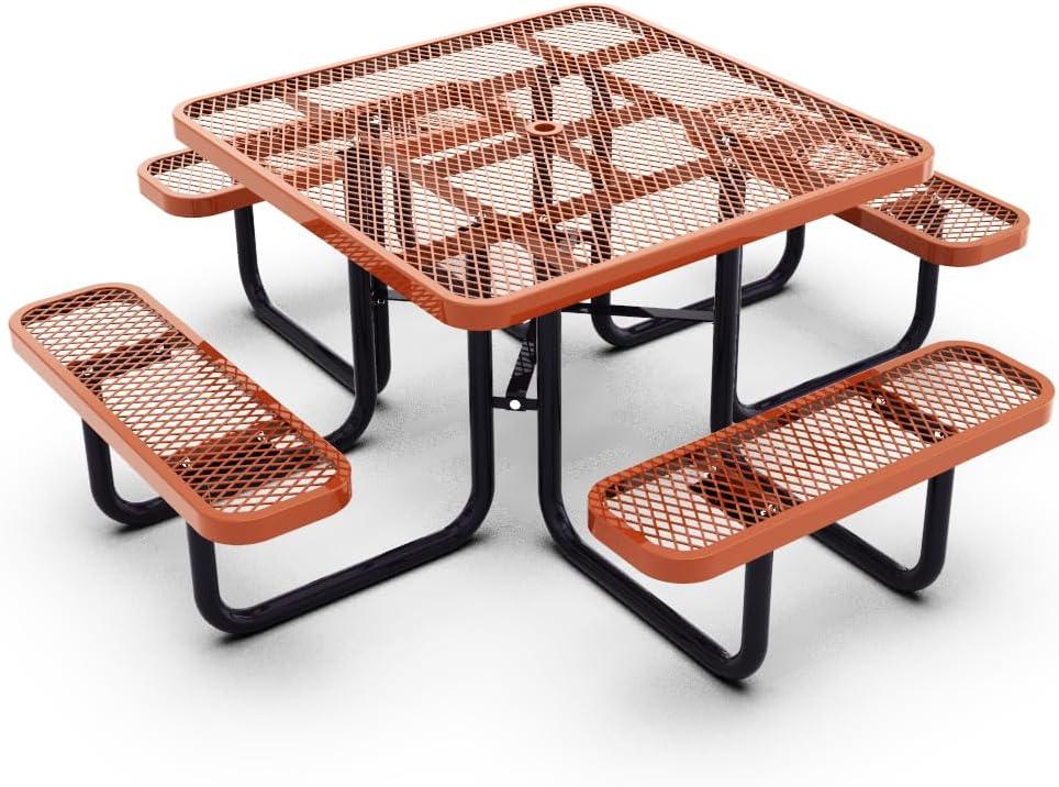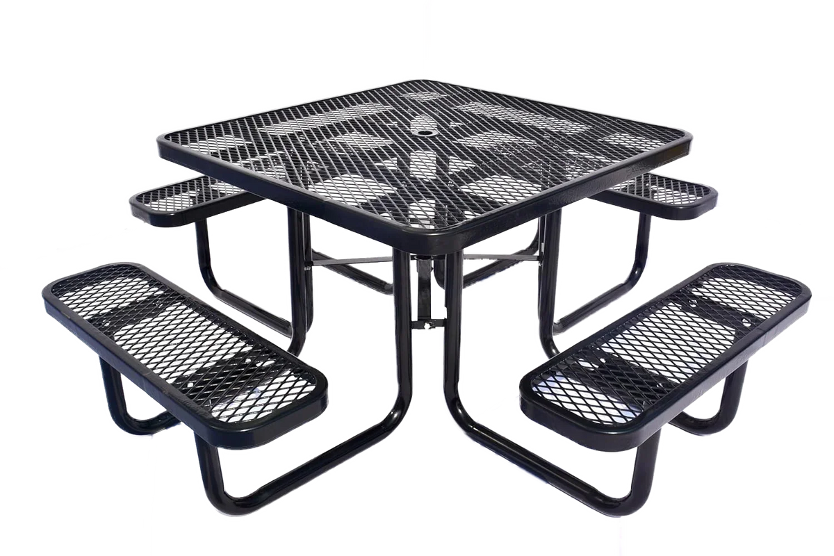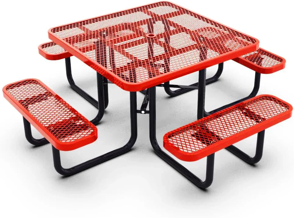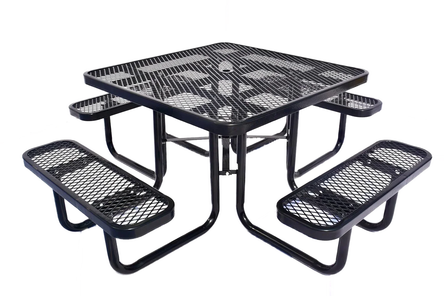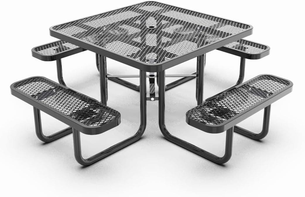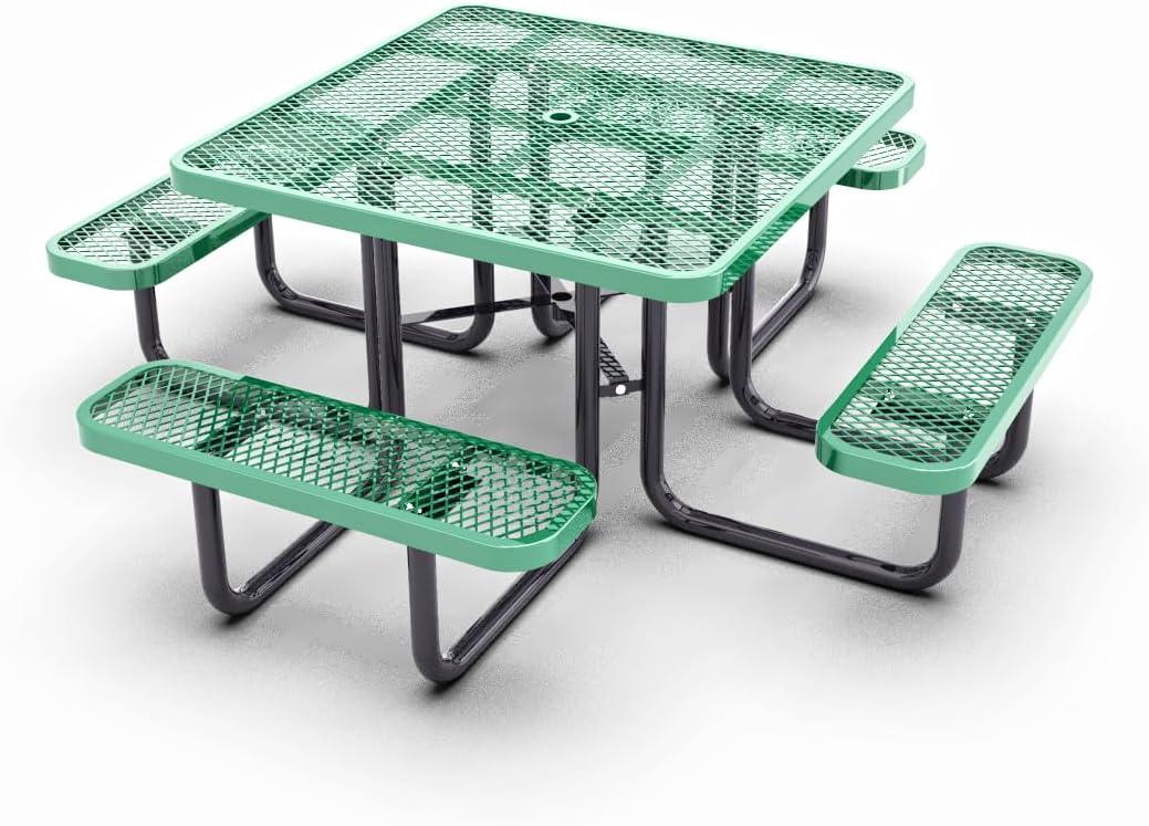 Our best selling 46" Square Commercial Picnic Table. Our commercial picnic tables have earned their reputation as some of the best on the market. Crafted with precision from and coated for exceptional durability, these picnic tables are built for the commercial environment. They are the preferred choice at sites across the nation. Their innovative design features expanded steel holes, allowing water to penetrate the surface and making the tables lighter and more portable.