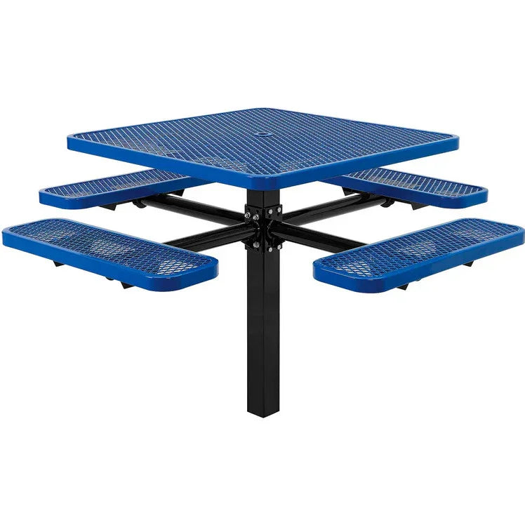 Single Pedestal Square 46" Picnic Table - Expanded Metal