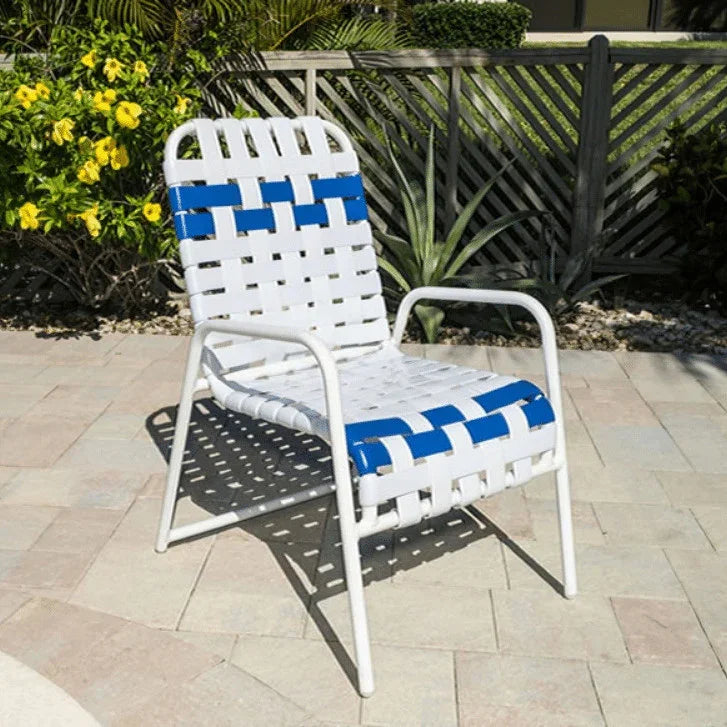 From pool to patio, you will find this very popular and iconic designed strap chair.  Strap vinyl is a very economical solution and our cross weave design is an extremely durable solution for commercial pool furniture.  With the users in mind, these chairs are built with an extra underside bracing for support and durability.  In addition, the double-wrapped vinyl straps are made with UV and mildew resistance that will extend the life of your equipment.  The chair body is constructed of a high quality aluminum body that will not rust and powder-coated in any of our frame finishes.  In addition, our chair lounges are easily stacked for storage and transportation.