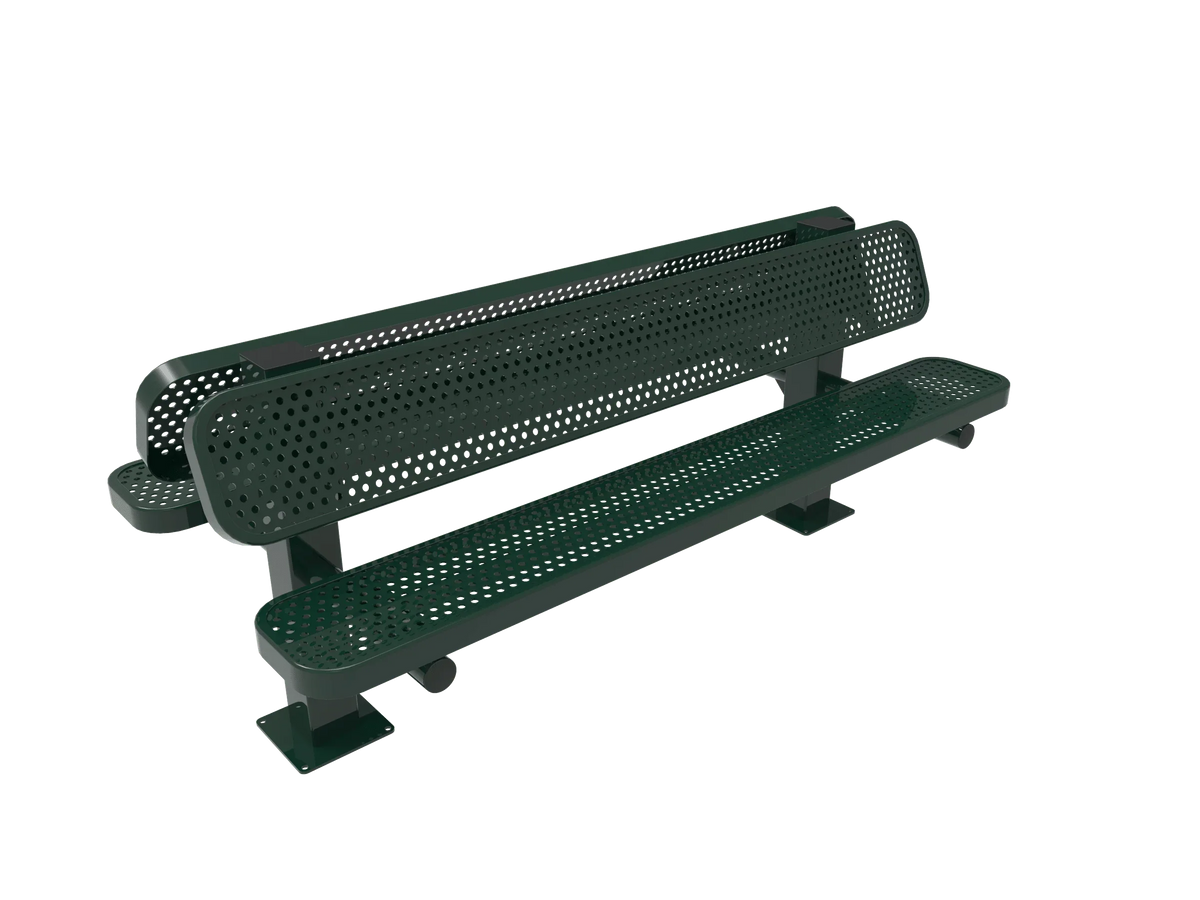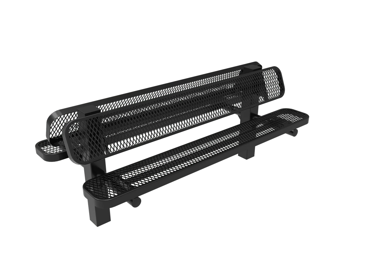 The Double Pedestal Bench offers double the seating due to pair of benches designed to be back to back. Square steel columns support the benches and make the bench sturdy and durable. The outdoor bench is made from durable commercial grade steel in a strong commercial grade steel finished off in a thermoplastic coating. Available in either expanded or punched metal, the double bench is a space saving design paring benches back to back for double the seating capacity. This model works best in between pathways allowing for access and views from multiple sides.