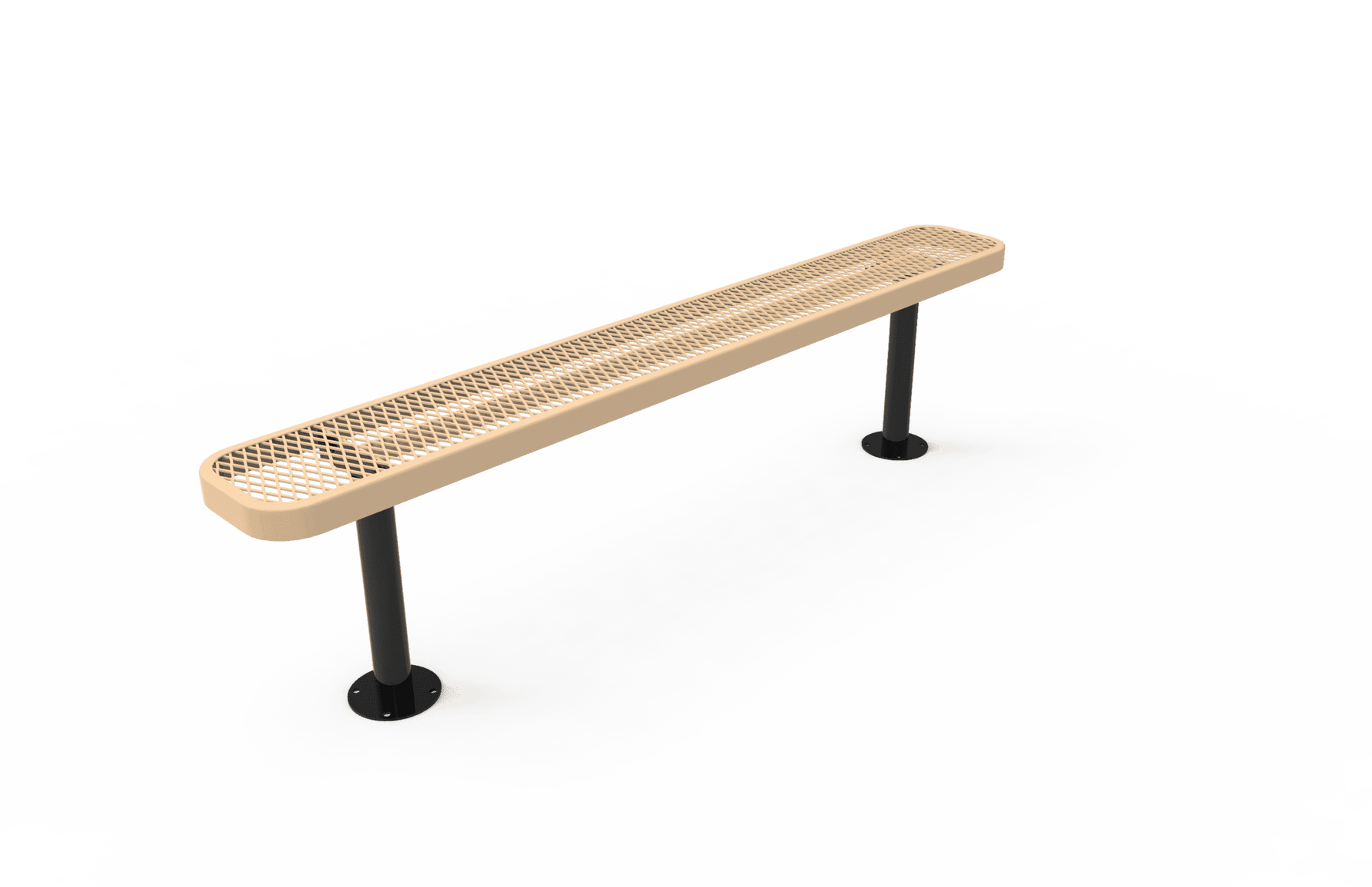 This Rectangular Bench is lightweight and easily transports wherever you choose to place it. Designed with two thick steel legs to help support the seat and the bases can be bolted onto concrete, implanted into dirt, or fitted with a portable mount in order to allow the bench to be moved. To help the bench stay dry, the bench is made from a steel weave, diamond shaped lattice. There are a variety of colors to choose from to personalize it to your taste.