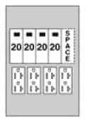- Two receptacles 5-20R2GFI on the left side, two center position receptacle 5-20R2GFI, right position receptacle 5-20R2GFI