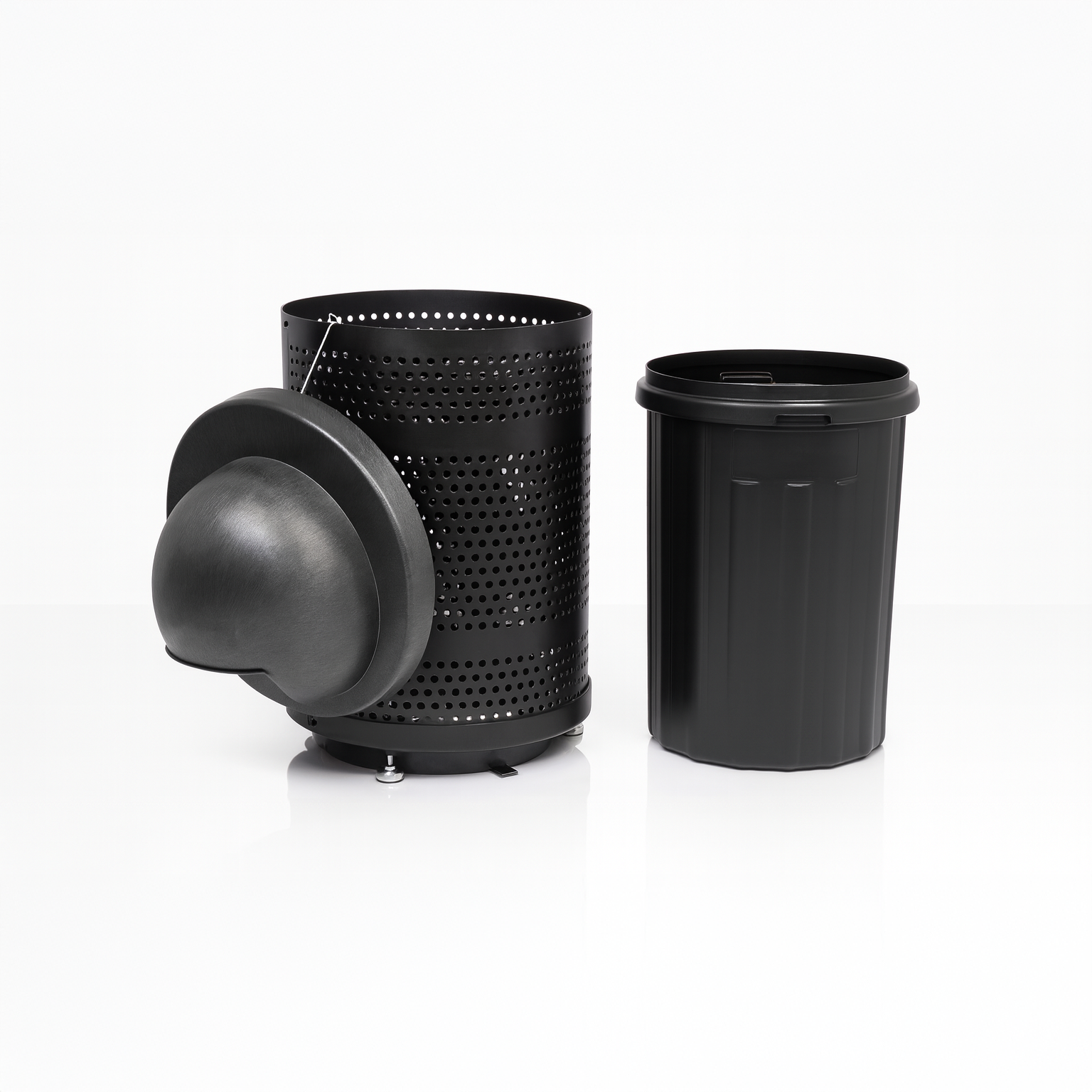 Our 32 Gallon Punched Steel Trash Can is our heaviest duty trash receptacle.  Its is affordable, extremely durable, and a convenient way to encourage guests to no litter. The heavy duty steel receptacle has a durable punched steel outer frame with an attractive circular hole pattern.