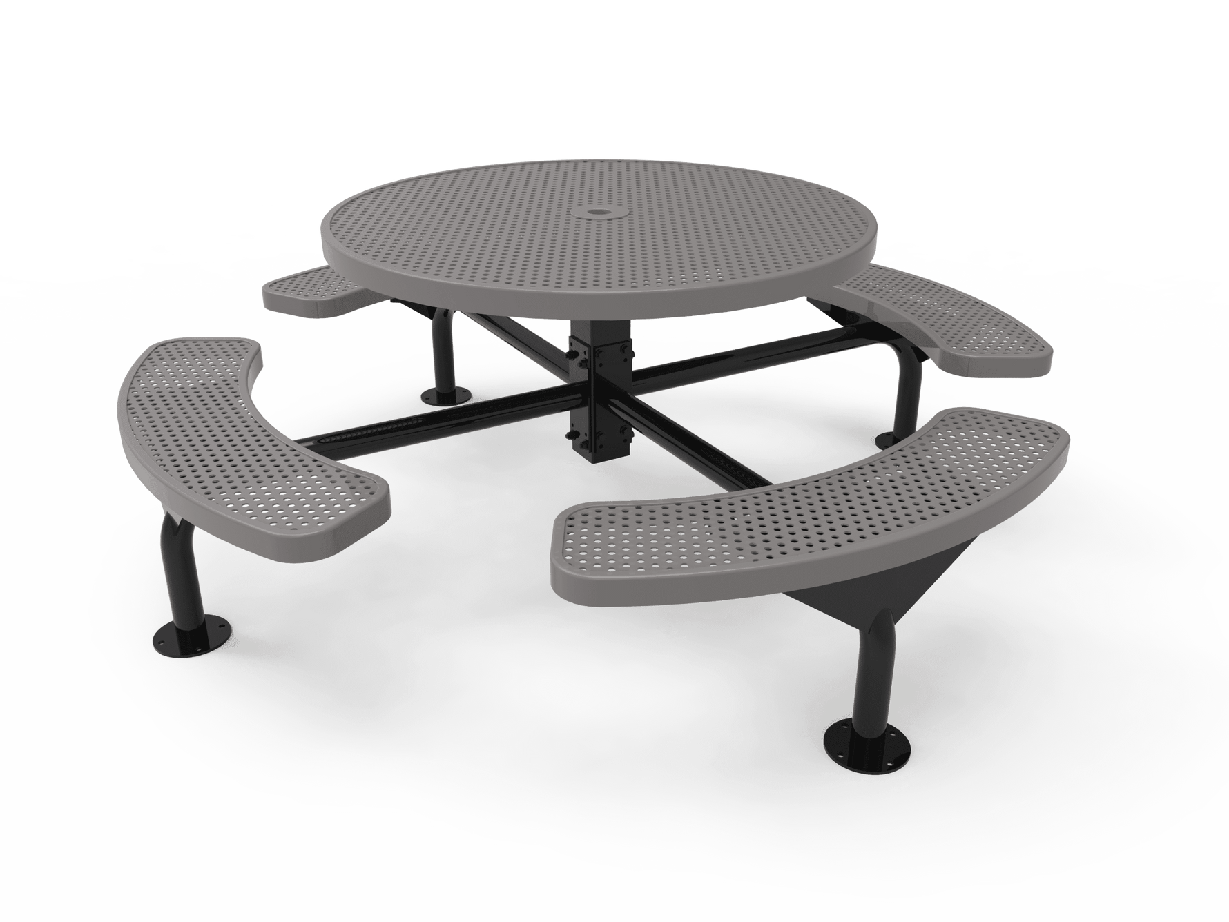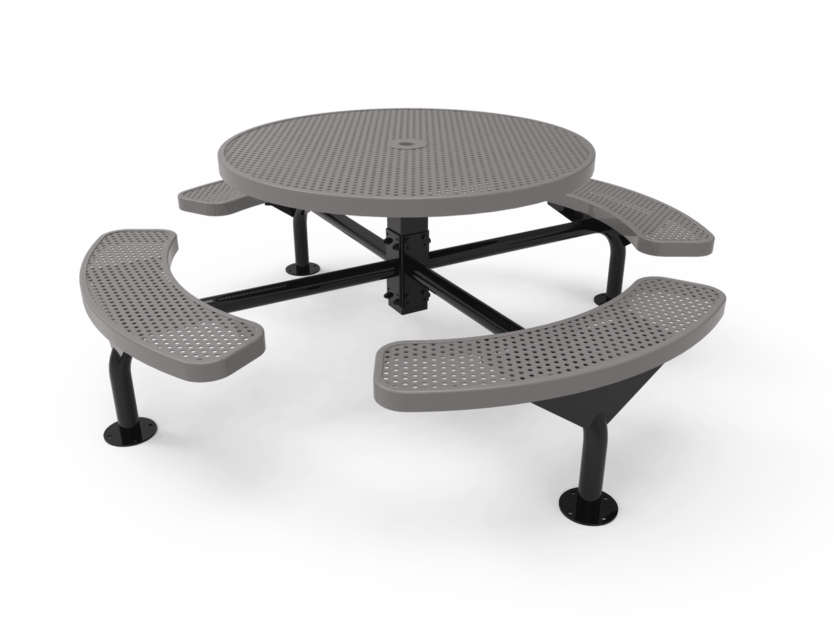 This Round Picnic Table is designed for your guests to face each other so it is ideal for social gatherings. The table comes with a hole in the middle so an umbrella can be used to offer shade and protection from the sun's UV rays. A portable base is offered so you can move the table to wherever you desire. The surfaces of the seats and table are made from a lasting steel in a diamond shaped lattice. To help reduce corrosion and the effects of the weather, the frame is coated in a powder coat paint and the table top and seats are thermoplastic and coated in Industry Standard or Advantage.