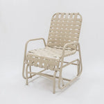 From pool to patio, our commercial basket weave poolside glider is the perfect choice. Strap vinyl pool furniture is a very economical solution and our cross weave design is an extremely durable solution for commercial pool furniture.  With the users in mind, these chairs are built with an extra underside bracing for support and durability.  In addition, the double-wrapped vinyl straps are made with UV and mildew resistance that will extend the life of your equipment.  The chair body is constructed of a high quality aluminum body that will not rust and powder-coated in any of our frame finishes.  In addition, our chairs are easily stacked for storage and transportation.