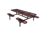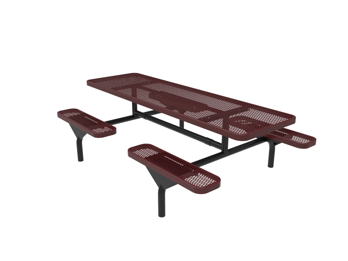 The Rectangular Nexus Picnic Table with Diamond Pattern is an 8ft long commercial outdoor picnic table complete with benches. It is a combination of our best-selling tops and seats with our Nexus Frame. The frame is made from 2-3/8” galvanized tubing inside and out, these frames add a style that gives you’re the durability of pedestal frames and the convenience of portable frames. Our Nexus tables come in a multitude of shapes including Rectangular, Round, Square, Octagon, Octagon with Rolled Seats, and our Round Solid Top styles.